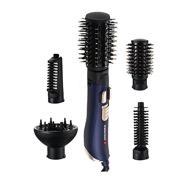 سشوار برسدار چرخشی حرفهای والوروس مدل VL-508، موتور AC با توان مصرفی 1200 وات، دارای قابلیت تعویض سری، طراحی ارگونومیک، دارای سیم گردان، با حالت صافکننده و فرکننده، وزن 950 گرم، تنظیم حرارت 2 حالته و کنترل سرعت 2 حالته، به همراه 3 سری برسدار