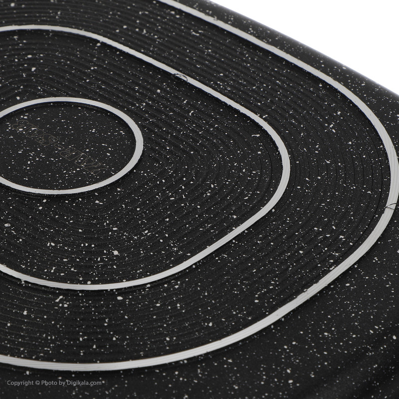- دارای تابه دو طرفه هر کدام با مشخصات: - سایز 29 و ابعاد 46×6×31 سانتیمتر و وزن 1140 گرم - سایز 29 و ابعاد 45×3×31 سانتیمتر و وزن 985 گرم - دارای درب آهنربایی - دارای کفی گریل - دارای کفی پخش حرارت