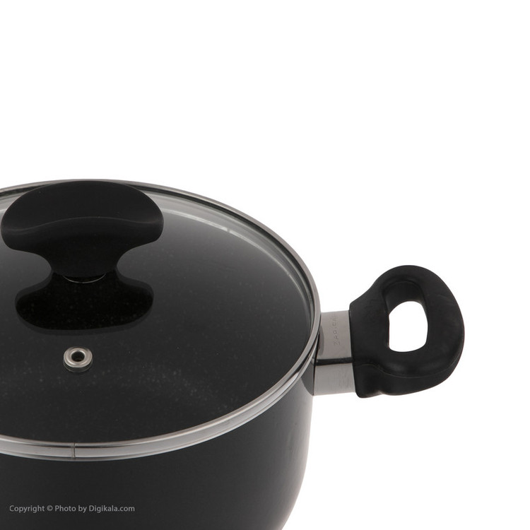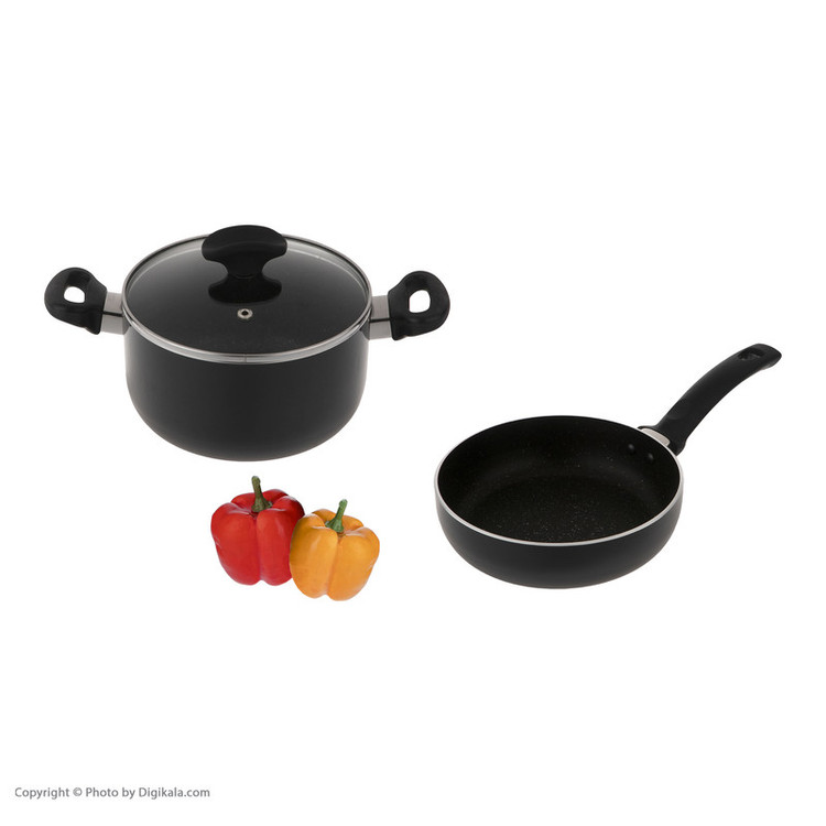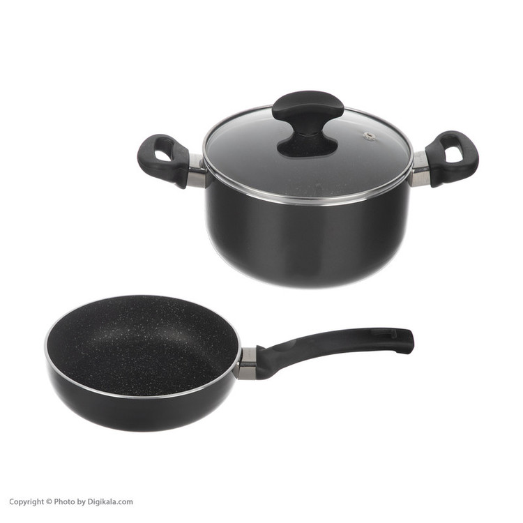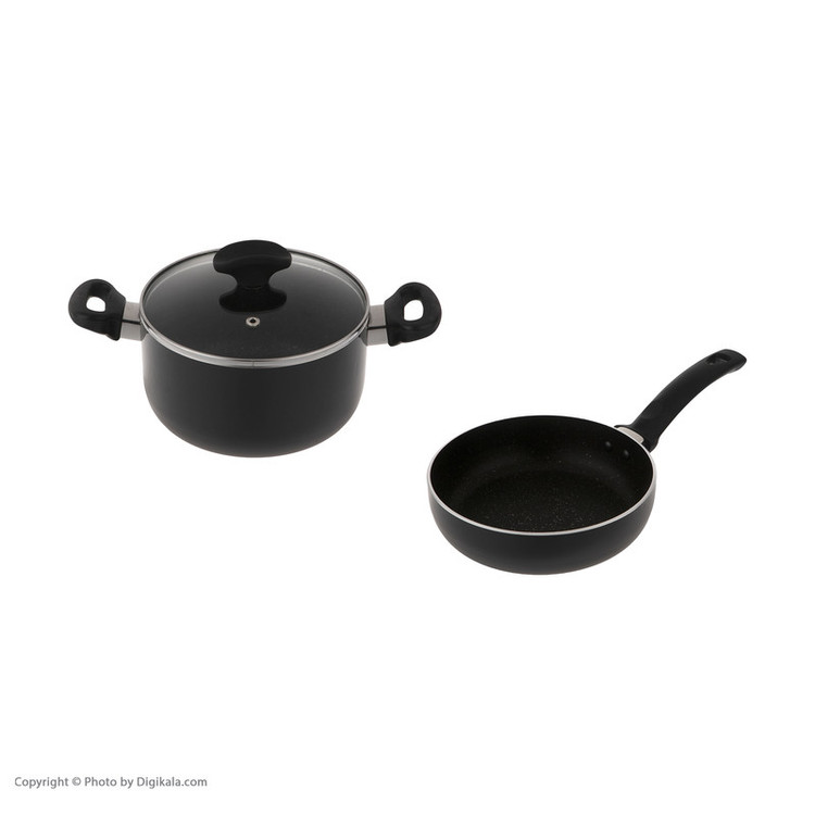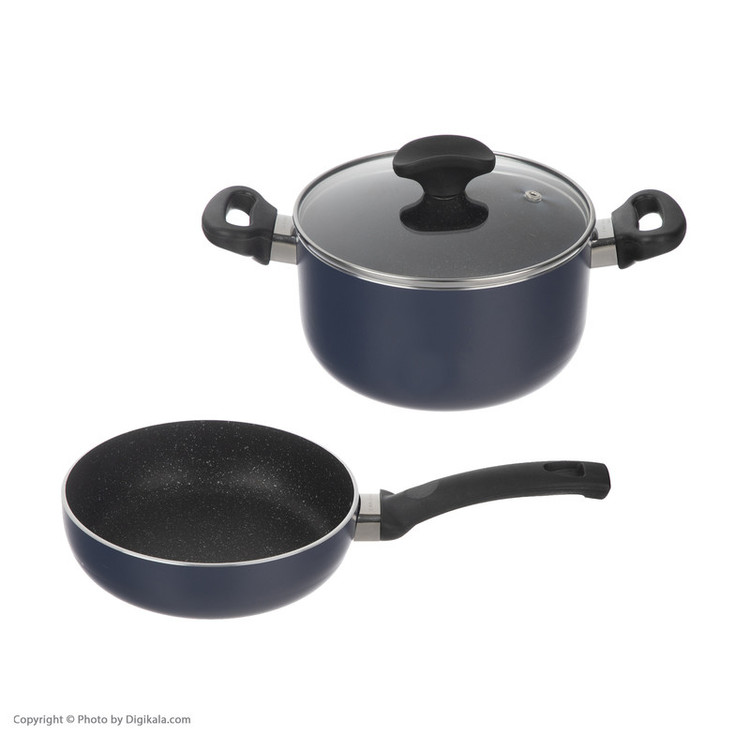 محصول فوق برای افرادی که به تابه و قابلمه با سایز کوچک نیاز دارند بسیار مناسب است. این محصول یکی از انواع سرویسهای پخت و پز 3 پارچهی شرکت زرساب بوده که مدل GT-418 نام دارد. این مجموعه شامل یک قابلمه، یک تابه و یک درب است که از این درب میتوانید هم برای تابه و هم برای قابلمه استفاده کنید. سایز قابلمه و تابه 18 بوده و به ترتیب ابعادی برابر 10 × 18.5 × 20.5 و 5 × 18.5 × 33.5 سانتیمتر دارد. ساختار بدنهی این ظروف آلومینیومی بوده و وزن مناسبی دارند. روکش گرانیتی این تابه و قابلمه از دیگر ویژگیهای آن محسوب میشود که پخت و پز را آسانتر کرده است.